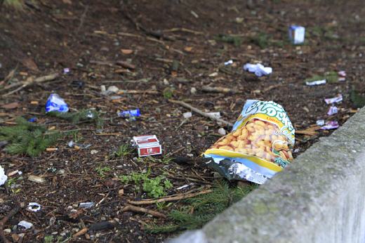 Der Start ins neue Jahr verlief rasant. Immer suchend nach neuen Trends zum Publizieren, wurde ich im neuen Jahr gleich fündig. Ich nahm die Abkürzung durch das Areal der Geschwister Scholl-Schule und traute meinen Augen kaum. So ein sensationelles Gesamtkunstwerk erblickt man selten! Auch die Teamarbeit in der Entwicklung des Konzeptes findet man nicht oft zwischen Schülern und Lehrern. Das gekonnte Setzen der Akzente und die gesamte Komposition, was das Zusammenspiel der Farbgebung anbelangt, ließen erkennen, dass es den Schülern bereits im Elternhaus in die Wiege gelegt wurde. Da korrespondiert eine weiße Plastikflasche mit roter Zigarettenschachtel, untermalt mit vielen kleinen farblichen Litterings. Zwischendurch ein bunter Durstlöscher umrahmt mit vielen Tempos, Pizzapackungen, und Plastiktüten. Einfach genial, dieses durchdachte Konzept der Aktionskunst. Beachtenswert, dass man bewusst die Papierkörbe leer ließ und die Trash-Art um sie herum platzierte. Die breit angelegte Kunstshow lässt erkennen, dass die Lehrer den Schülern ziemlich freie Hand ließen. Da die mannigfaltigen Kunst-Utensilien nicht von ihren Plätzen entfernt wurden, muss das neue Kunstkonzept auch Gefallen bei der Lehrerschaft gefunden haben. Ein noch außerordentlicher Aspekt ist, dass man in der Geschwister Scholl Schule konträre Wege geht! Überall herrscht heute striktes Rauchverbot. Aber in dieser Schule scheint es, nach den vielen Zigarettenschachteln, die im Hof liegen, erwünscht zu sein. Denkt man dort am Ende visionär? Und sorgt jetzt schon wohlweislich für eine nicht alternde Gesellschaft?