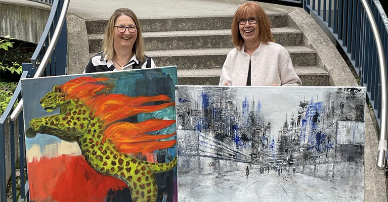 Zwei künstlerische Handschriften begegnen sich im Spannungsfeld zwischen Urbanität, floraler Energie und expressiver Bildsprache.